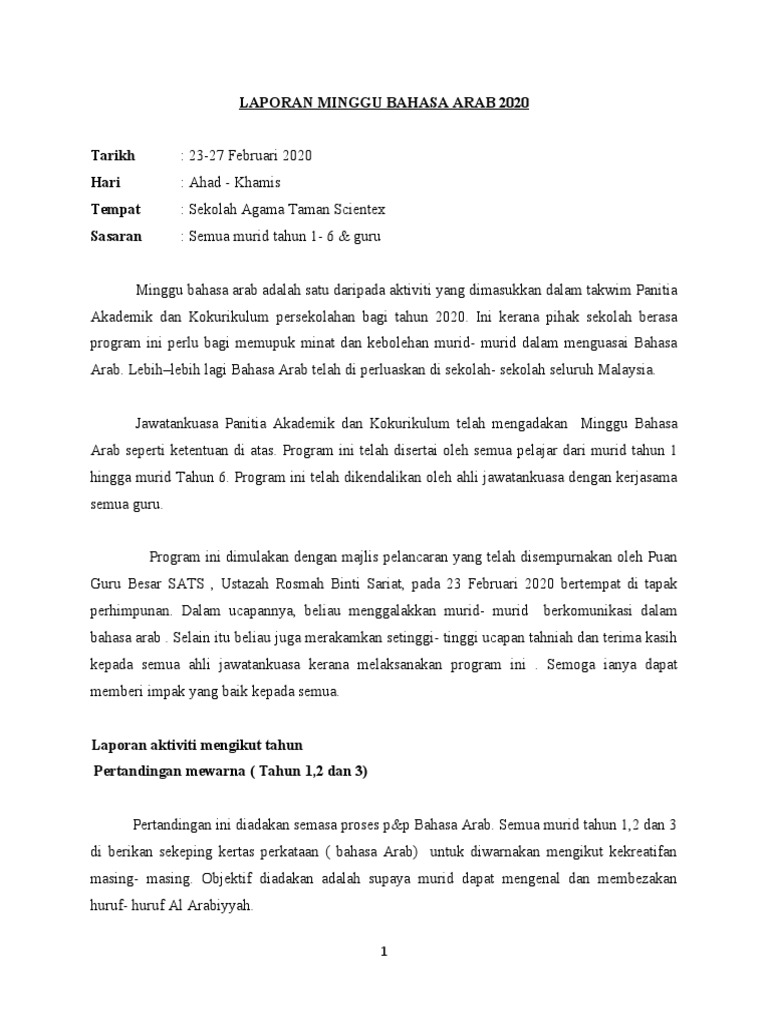Kertas Kerja Minggu Bahasa Arab 2019 Pdf