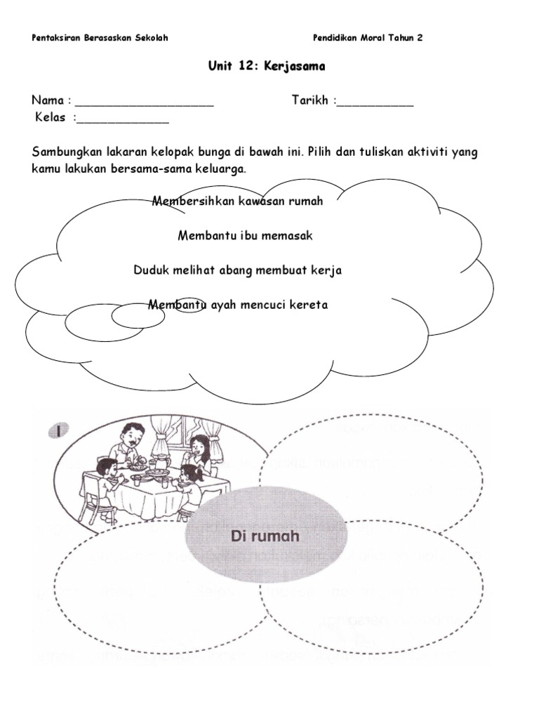- Keluarga mengajak kamu pergi beribadat di tempat ibadat Melakukan ibadat - Ibu bapa kamu tiada di rumah. Rpt Moral Tahun Satu 1. PENDIDIKAN MORAL TAHUN 2KERJASAMA MERINGANKAN BEBAN KELUARGA - Kuiz.